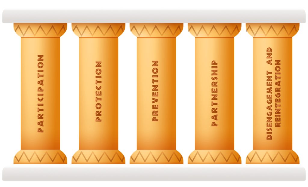 - There appears to be uneven implementation of the five priorities, with more focus being placed on the participation and prevention pillars, while the protection, disengagement and reintegration priorities tend to be overlooked.[20]